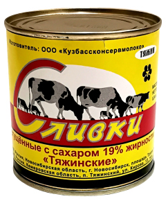 Сливки сгущенные с сах. 19% ТЯЖИНСКИЕ, 340г, ТУ, жб - Купить в магазине "Светофор" город Северодвинск, Архангельское шоссе, 29
