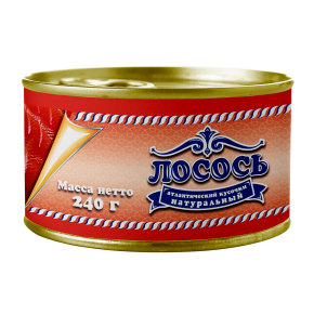 Лосось натуральный кусочки 240гр, ключ, ТУ, ПИЩЕВИК. - Купить в магазине "Светофор" город Северодвинск, Архангельское шоссе, 29